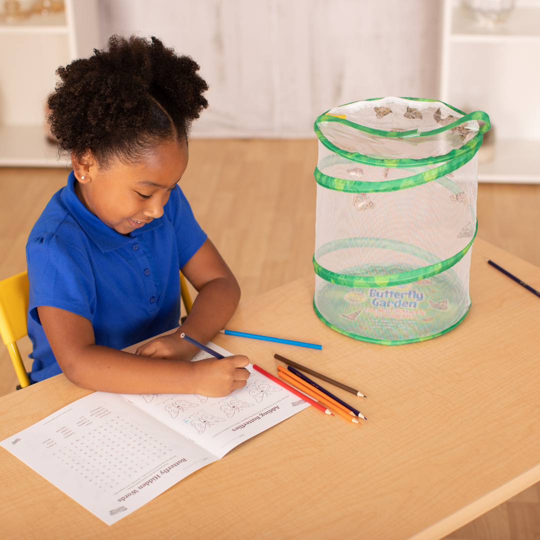 It's a great educational project for families to share. Includes Pop-up 12-inch, super-see-thru mesh habitat, 12-page STEM Journal, feeding dropper, and a voucher to redeem at your convenience for 5 baby caterpillars