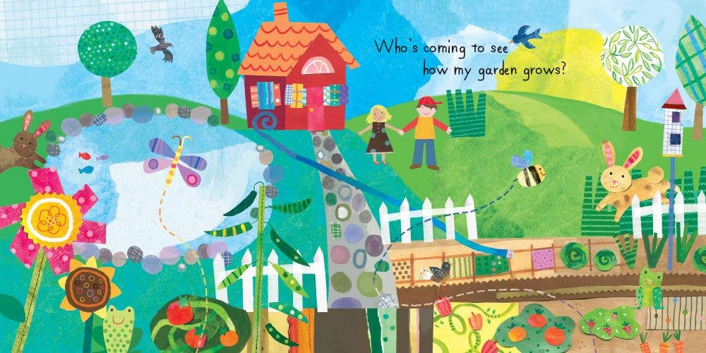 In this delightful peek-a-boo board book, children are invited to look through the holes on every other page to answer the repeating refrain, “Who’s coming to see how my garden grows?” The energetic, rhyming text introduces all sorts of creatures that are busy in the garden.